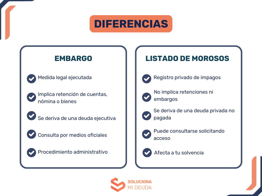 Es muy frecuente confundir un embargo con aparecer en listas de morosos como ASNEF o RAI, pero son situaciones completamente distintas: